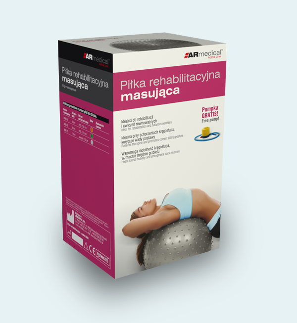 Piłka rehabilitacyjna masująca przeznaczona jest do korygowania wad postawy, w terapii mającej na celu poprawę kondycji i koordynacji ruchowej, wzmocnienia mięśni grzbietu, zwiększenia ruchomości stawów oraz w schorzeniach neurologicznych. Doskonała dla osób chcących zachować sprawność fizyczną dzięki treningowi ogólnorozwojowemu. Dzięki miękkim masującym wypustkom na całej powierzchni stymuluje sfery reflektoryczne (receptory) na skórze działając pobudzająco.