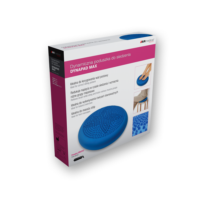 Dynamiczna poduszka DYNAPAD MAX służy do korygowania wad postawy oraz wzmocnienia mięśnie grzbietu. Pozwala ona odciążyć lędźwiowy odcinek kręgosłupa w trakcie siedzenia. Dzięki swoim właściwościom pozwala zachować prawidłową pozycję i stymulować mikroruchy krążków międzykręgowych. Zalecana jest wszystkim tym, którzy dużo czasu spędzają w pozycji siedzącej.